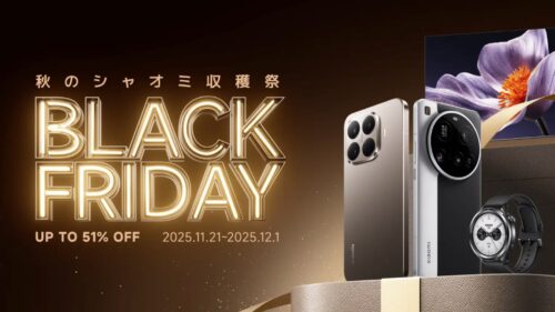 シャオミ・ジャパンは、11月21日から12月1日まで「Xiaomi ブラックフライデー 2025」を開催します。今年はスマートフォン、タブレット、ウェアラブル、スマート家電まで幅広い製品が対象で、割引率は最大51%。とくにスマホでは、「Xi...
