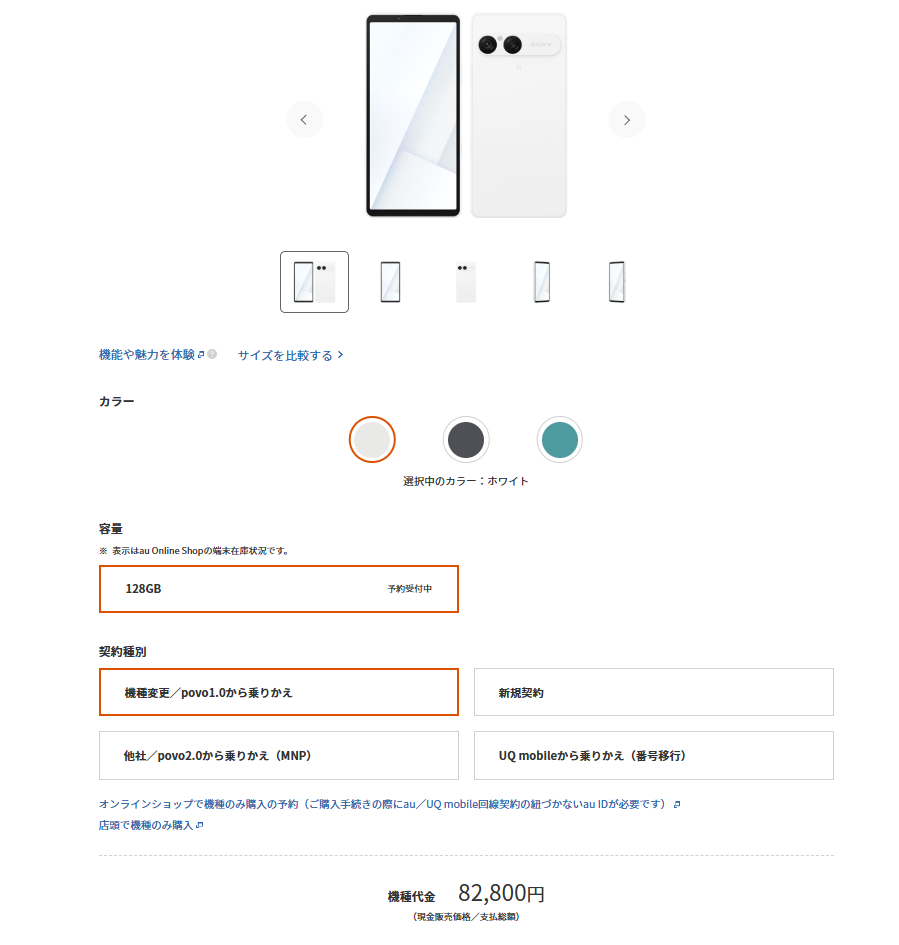 au版SOG16 | 機種変:82,800円 新規:71,800円 MNP: 60,800円 | - | 機種変:50,900円 新規:34,400円 MNP: 28,900円 |