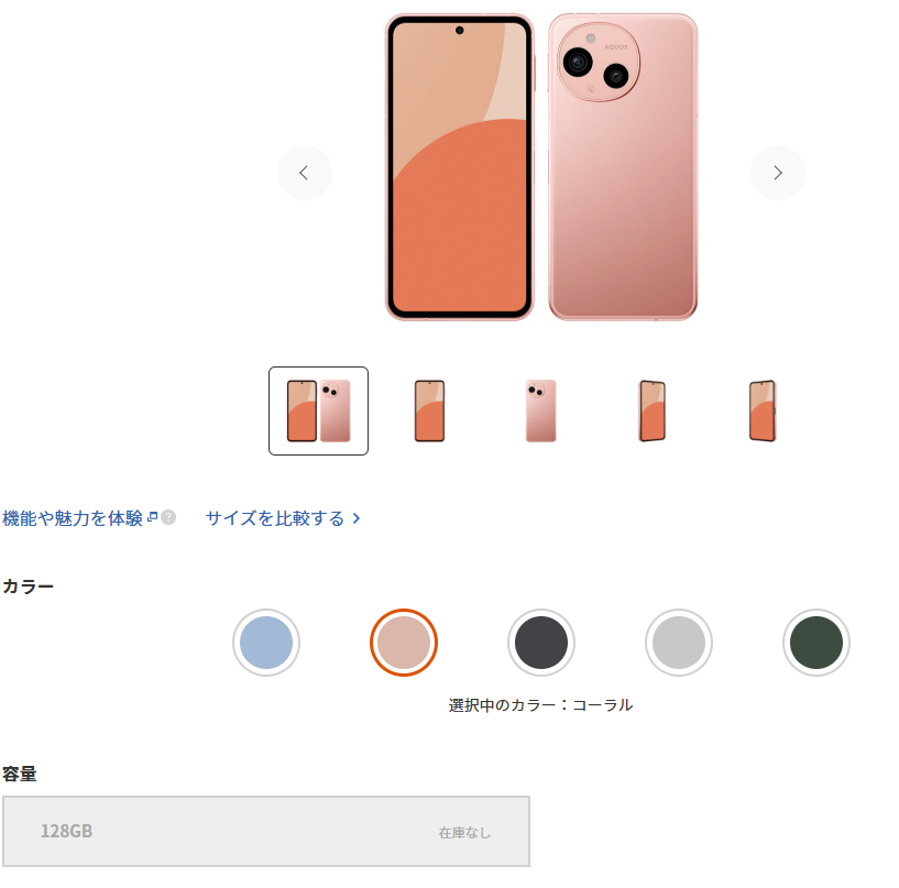 さらにauオンラインショップでも5色すべてが在庫切れ。どちらも再入荷予定が明記されておらず、事実上の販売終了に向けた在庫整理が始まっている可能性があります。