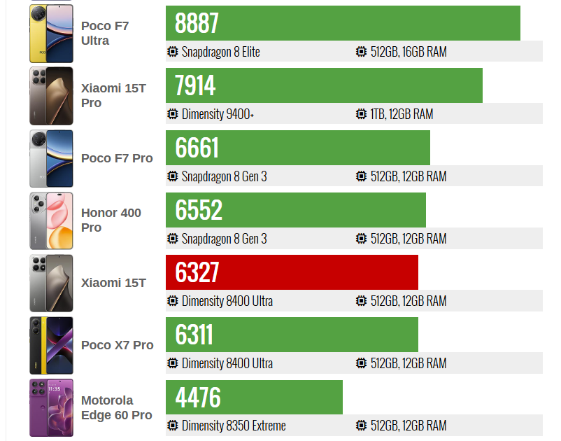 Xiaomi 15TとXiaomi 15T Proの性能比較