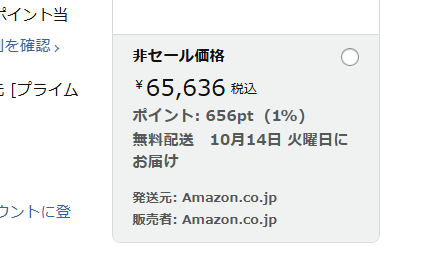 この価格逆転現象、部分的には512GBモデルが現在プライム感謝セールの対象という点で、ブルーとブラックに関してはセール対象外、つまりプライム会員以外の場合、価格は65,636円となります。