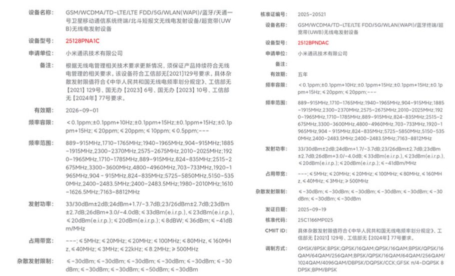 IMEIデータベース上では、グローバル向けと思われる「2512BPNDAG」と「25128PNA1G」の2モデルも登録されています。上位モデルは衛星通信をサポートし、どちらもLeica監修の4カメラ+50MPフロントカメラを搭載するとみられます。中国版は年内、国際版は2026年3月のMWCでの発表が有力視されています。