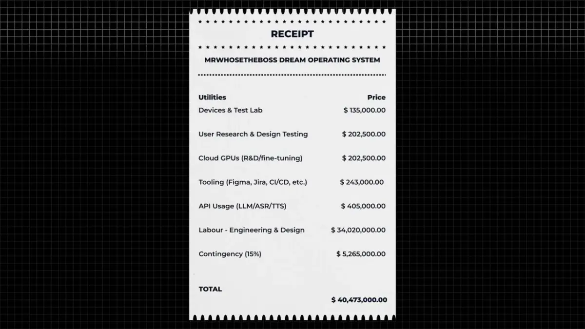 Nothingによる試算では、総額のうち 約3,400万ドル(約51億円) がエンジニアリングとデザイン関連費に充てられるとのこと。そのほか、クラウドGPUやR&Dツール、ユーザーテスト、ライセンス料、検証機材などが数十万ドル単位で積み上がり、さらに予備費として15%の“バッファ”を加えると、最終的に4,000万ドル超のコストに達します。