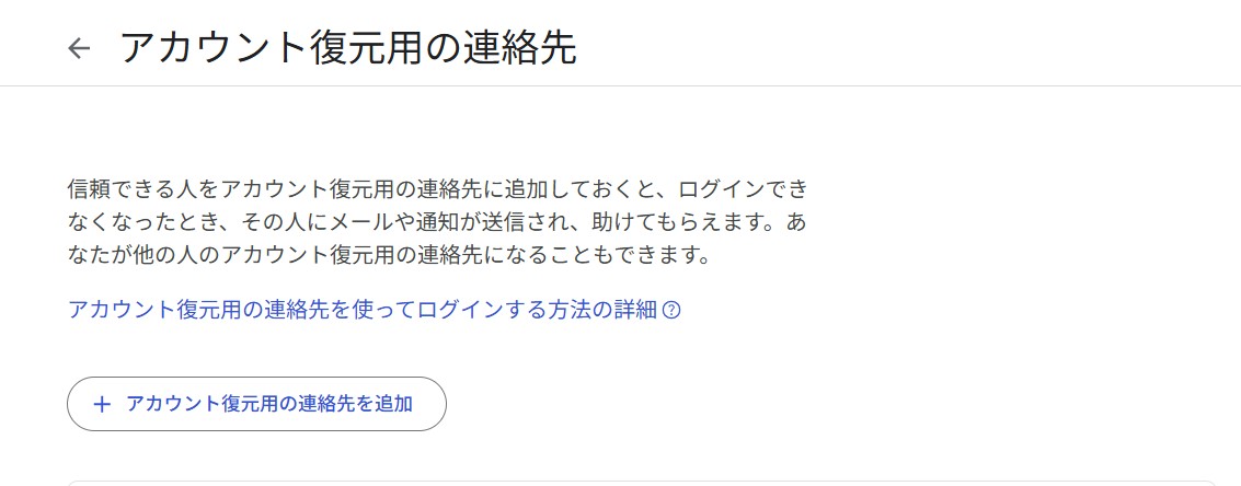 予期せぬトラブルに備え、信頼できる家族や友人を「アカウント復元用の連絡先」として早めに登録しておくことをおすすめします。