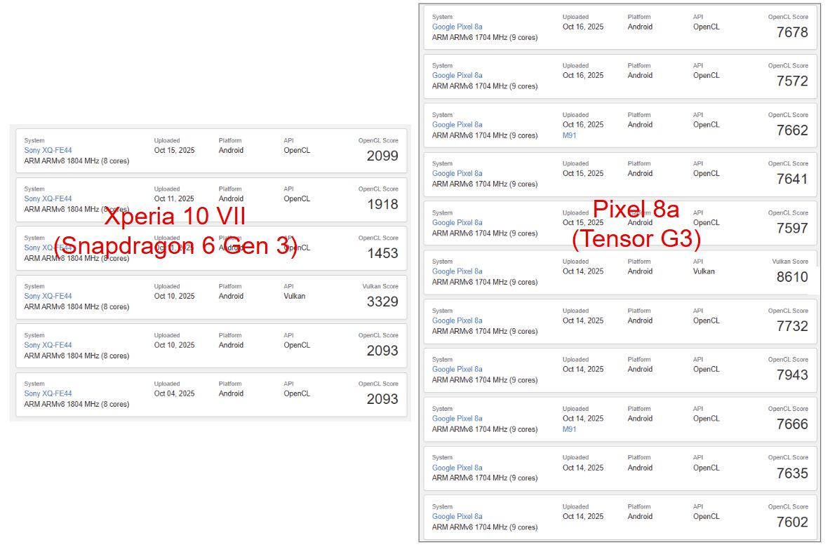 Xperia 10 VIIとPixel 8aのベンチマーク性能比較