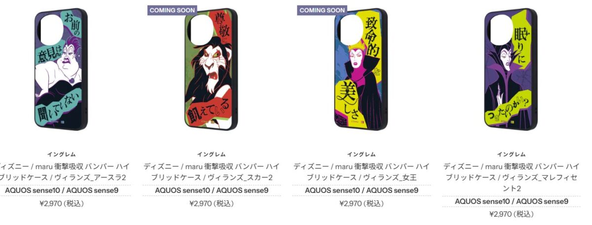 ディズニーアニメとのコラボ商品で、AQUOS sense10とsense9の両モデルに使用することができることが明記されています。