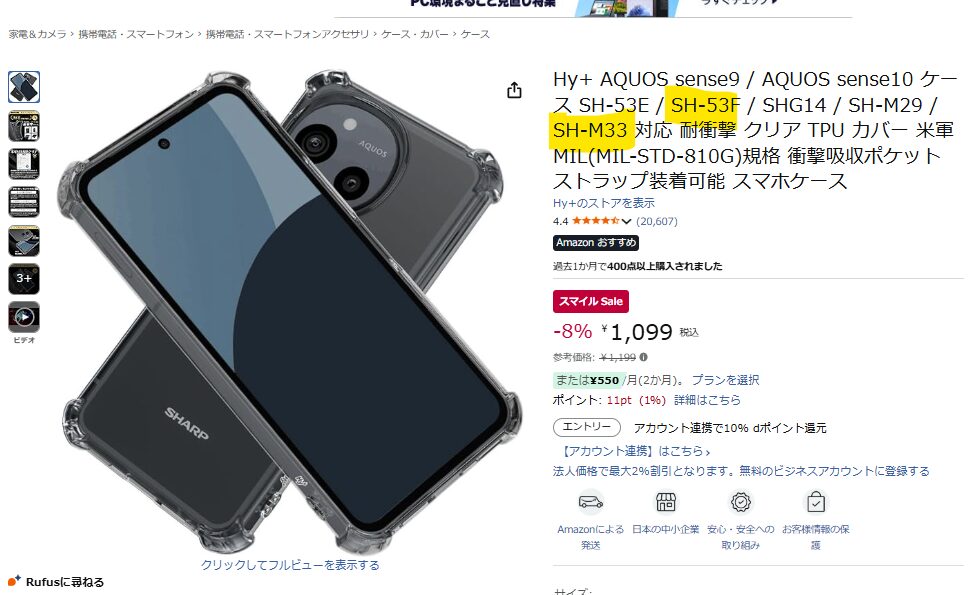 しかし今回のケースの対応型番を見ると、ドコモ版のSH-53FとSIMフリー版のSH-M33のものしかなく、au版やソフトバンク版の型番が記載されていません。