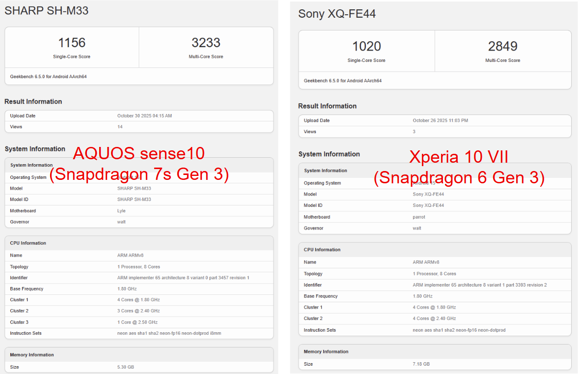 AQUOS sense10とXperia 10 VIIのベンチマーク性能比較