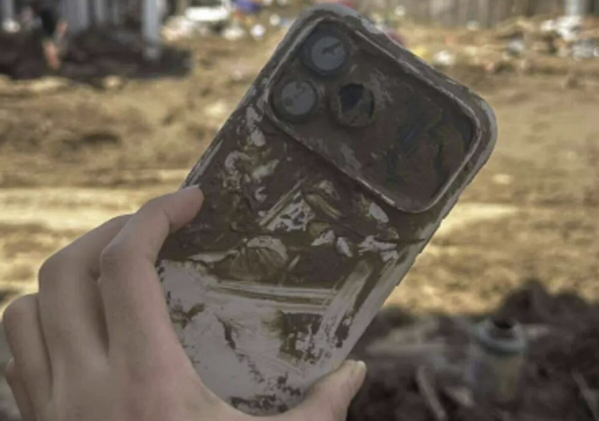 投稿者によると、iPhoneは「CARE by PanzerGlass Samba Vanilla」というケースに入っていたものの、このケースが泥水の中でどれほど機能したかは不明です。