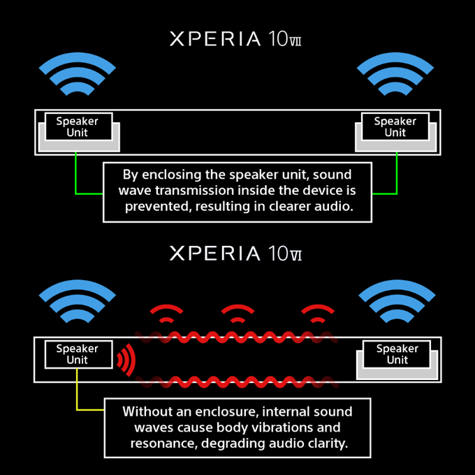 ソニーがミッドレンジ最新モデル「Xperia 10 VII」に採用したスピーカー構造について、公式Xアカウントで技術的な解説を行いました。すでに10月前半に発売された本機ですが、従来のXperia 10シリーズでは採用されていなかった“スピーカーユニットの密閉構造”がポイントとなっています。