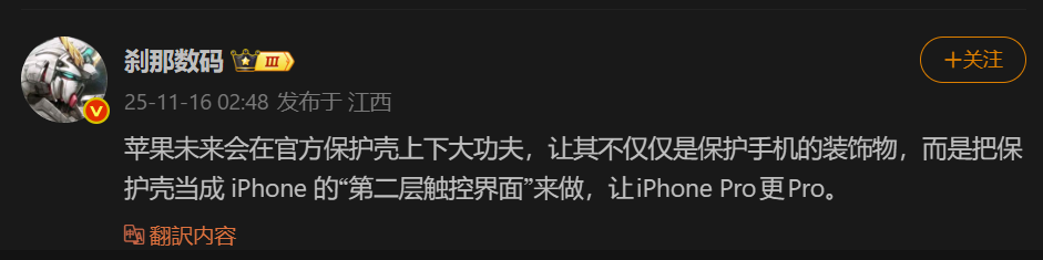 Weiboで情報を発信するInstant Digitalによれば、AppleはiPhone Proシリーズ向けにタッチセンサー層を組み込んだケースを準備しているとのことです。これにより、ケースが単なるアクセサリーではなく、端末の操作を担う“外部タッチパネル”のような存在になる可能性があります。