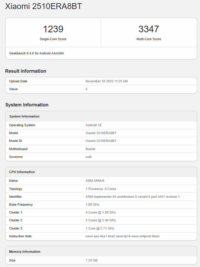 今回確認されたGeekbenchスコアは、Redmi Note 15 Pro Plusのグローバル版とみられる端末のもの。