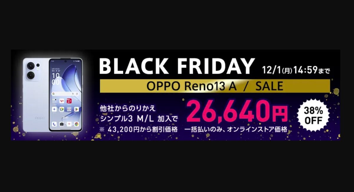 今回のセールで最も注目されているのは、ミドルレンジの人気モデル「OPPO Reno13 A」です。