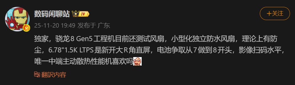 アクティブ冷却ファンを継承、Snapdragon 8 Gen 5を採用か