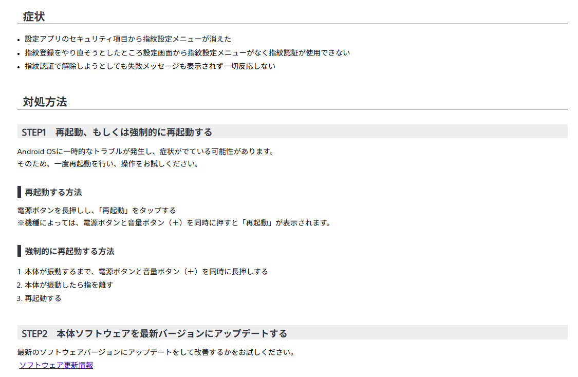 複数のXperiaモデルで指紋認証が突然使えなくなり、設定項目そのものが消えてしまう──。