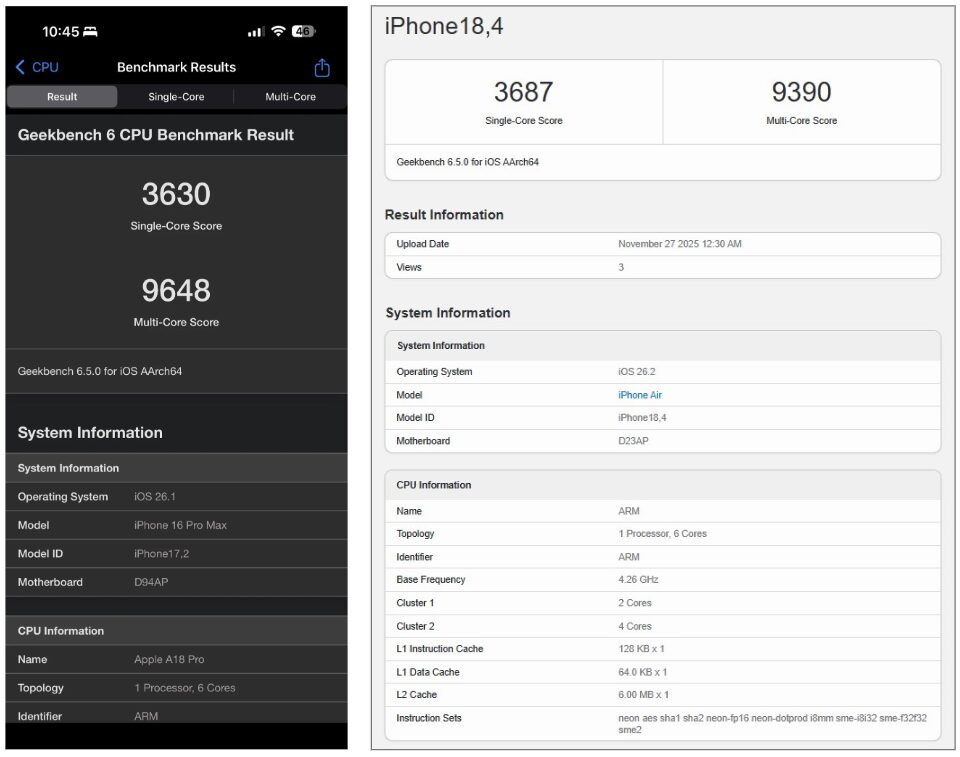 iPhone 16 Pro Maxに搭載されている「A18 Pro」が、上位世代のA19 Proを搭載したiPhone Airに迫るどころか、条件次第では上回る性能を出す――そんな興味深い検証結果がSNS上で注目を集めています。