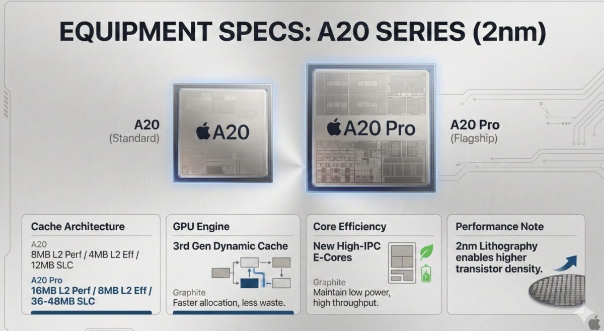 ただし、A20シリーズの進化は「2nm化」だけではありません。内部構造やキャッシュ設計、GPUの仕組みに至るまで、複数の技術が大きく変わる“転換点”となります。