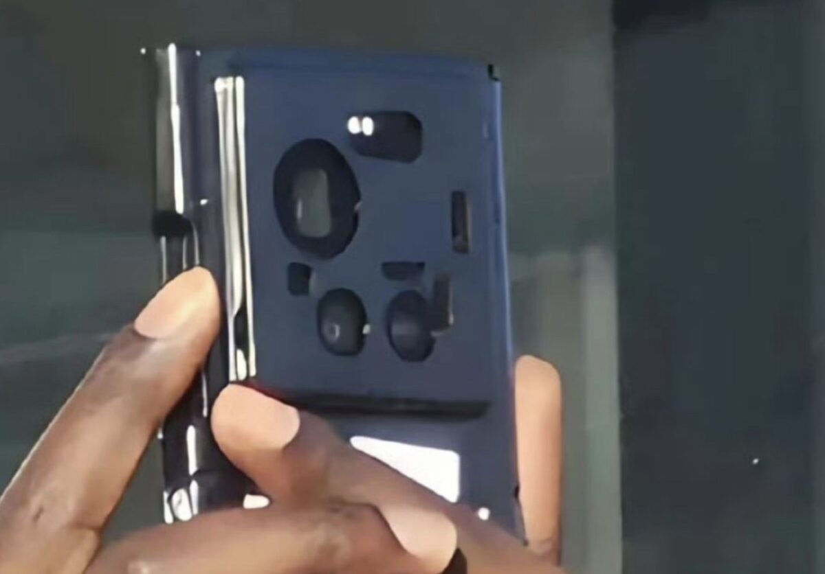 流出した写真は、開発初期段階のテスト機とみられ、分厚いプロテクトケースに収められた状態で撮影されています。それでも背面のカメラ配置ははっきり確認でき、これまで噂されていたLeica監修の新デザインと一致しています。
