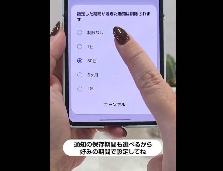 - 無期限・長期の保存期間を設定可能: 通知の保存期間を「無期限」「1年」など、好みに合わせて細かく設定できます。これにより、一般的な方法とは異なり、メッセージを後からいつでも確認できます。