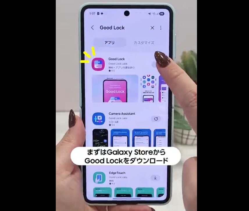 まず、Galaxy Storeから無料アプリ「Good Lock」をダウンロードして起動します。