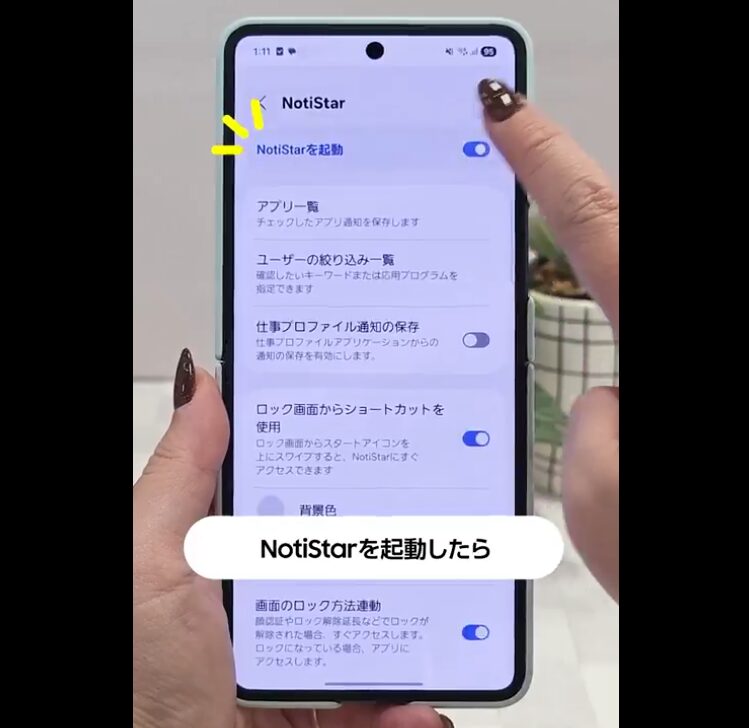 - ホーム画面またはロック画面から「NotiStar」アプリを起動します。