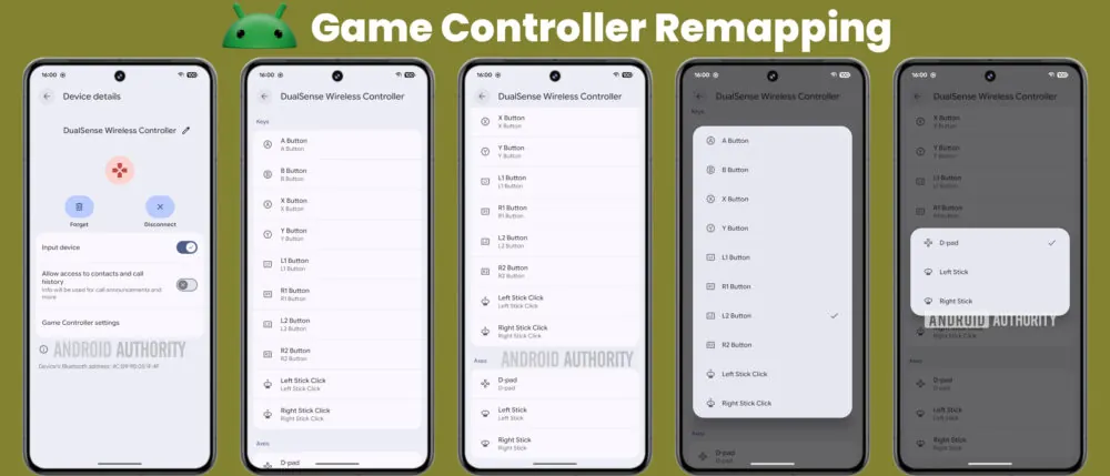 Android Authorityによると、Android Canaryビルド「2512」で“Game Controller Settings”内に新たなボタンリマッピングメニューが追加されていることが確認されています。