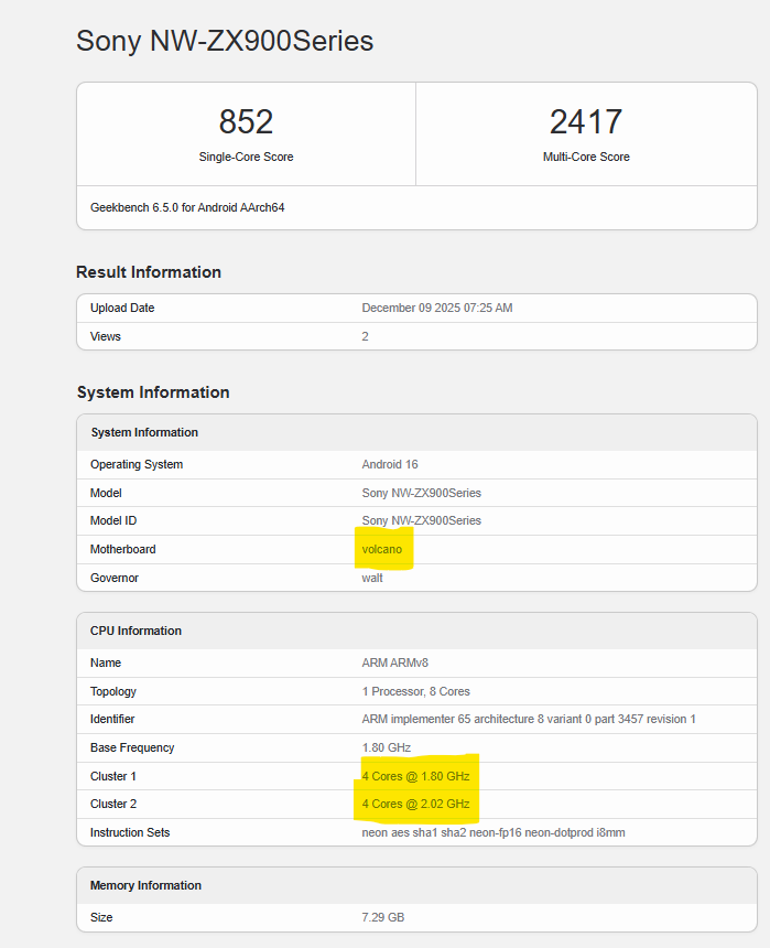 このため、ZX900シリーズにはVolcanoをベースにしたソニー向けの特別仕様SoCが採用されている可能性もあり、高音質処理や電力管理に特化した最適化が行われているのではないかと推測されます。