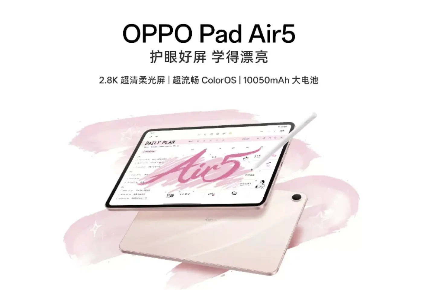 OPPO Pad Air 5は、2.8K解像度のディスプレイを採用し、OSにはColorOSを搭載することが確認されています。バッテリー容量は10,050mAhと大きく、動画視聴や学習用途などでも安心して使える構成となりそうです。