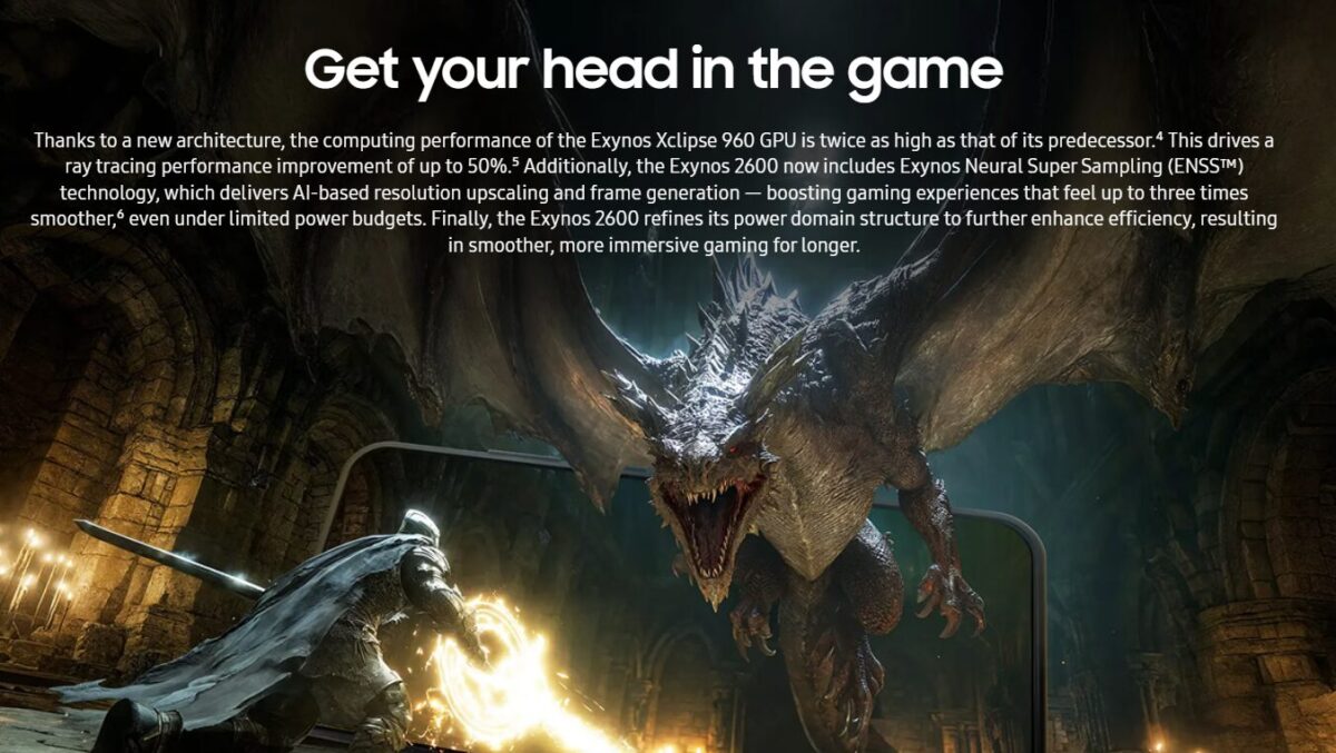 さらに、Exynos Neural Super Samplingによるフレーム生成技術を活用することで、対応ゲームでは最大300%滑らかな描画が可能になるとされています。高負荷な3Dゲームや次世代グラフィックス表現への対応力が大きく強化されました。