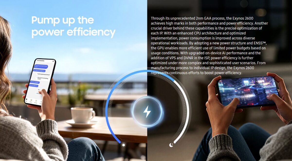 Exynos 2600最大の特徴は、スマートフォン向けとしてはサムスン初となる2nm GAAプロセスの採用です。これにより、性能向上と電力効率の両立を実現し、今後のExynosシリーズの基盤となるプラットフォームとして設計されています。