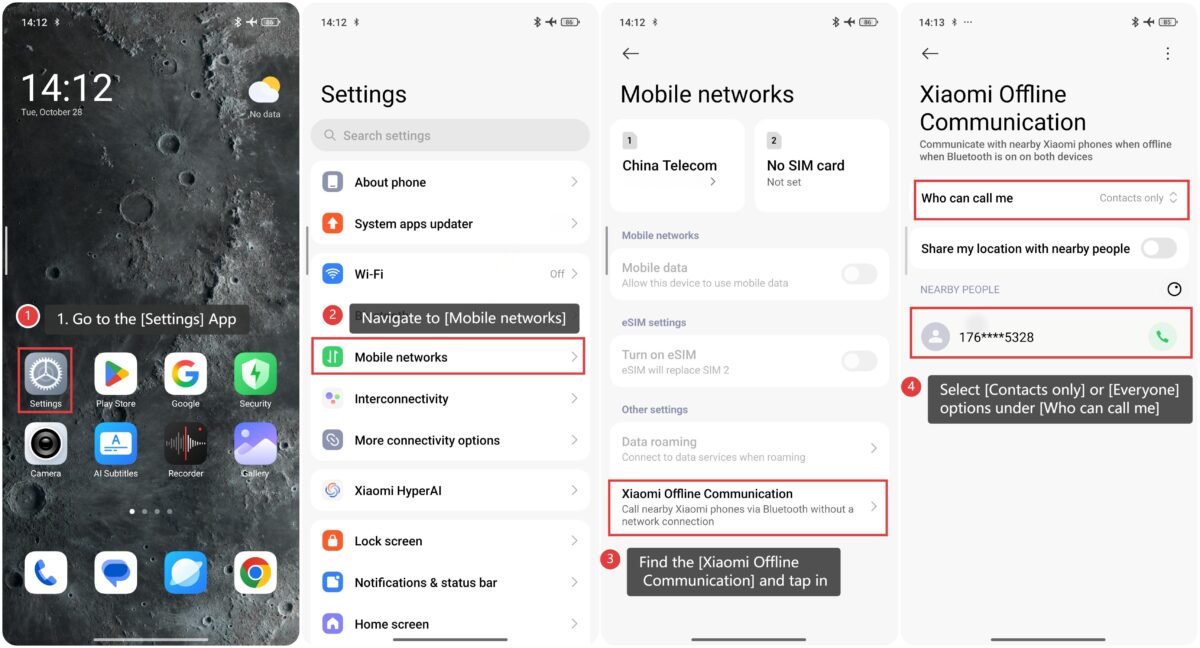 基地局やインターネットを経由せず、対応するXiaomi端末同士を直接接続することで、通信圏外でも音声通話が可能になります。