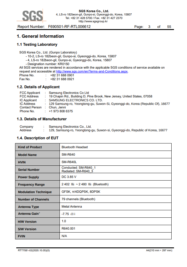 FCCに登録されたGalaxy Buds 4 Proの型番は「SM-R640」で、左右それぞれ「SM-R640L」「SM-R640R」として認証を取得しています。FCC IDも左右別々に割り当てられており、Bluetoothヘッドセットとして登録されています。