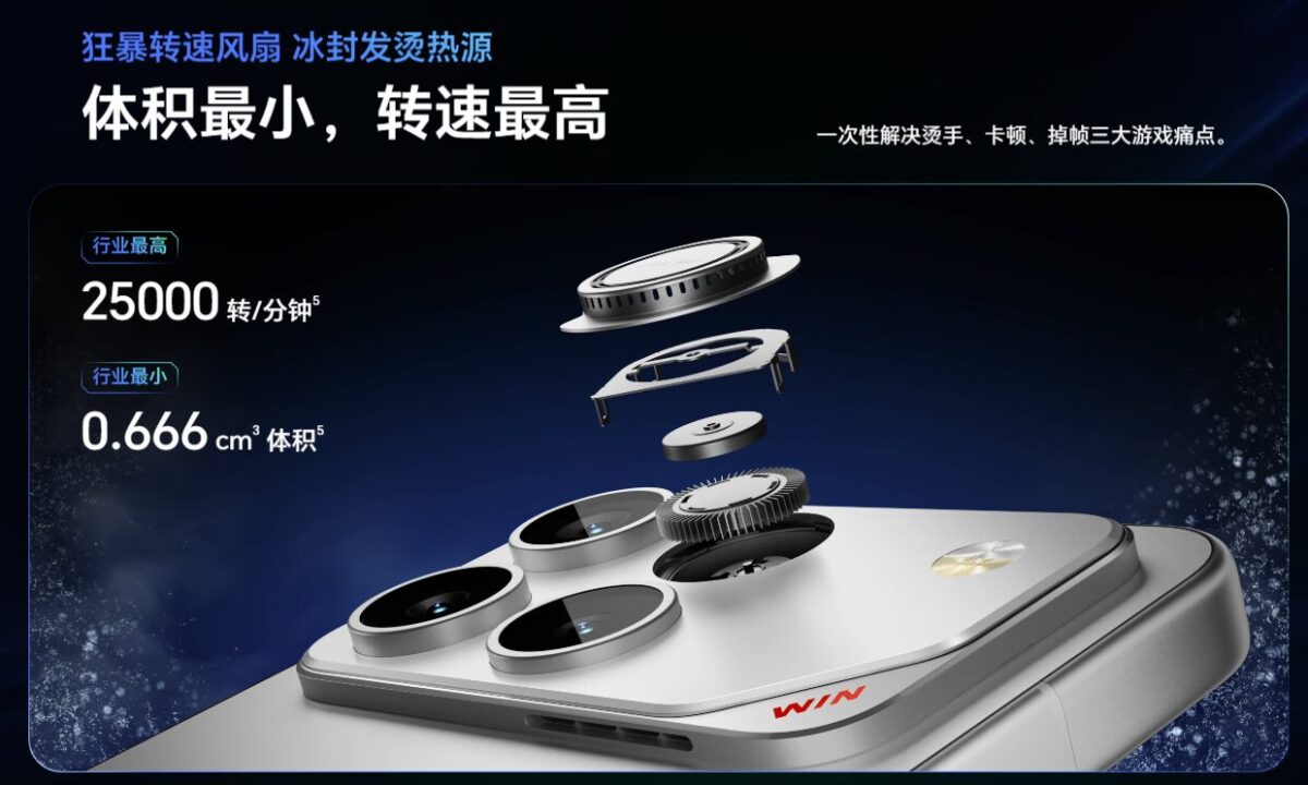 さらに、本体内部には物理的な冷却ファンを備えたアクティブ冷却システムを内蔵しています。最大25,000rpmで回転するファンがSoC周辺に直接風を送る設計となっており、長時間のプレイでも熱による性能低下を抑える仕組みです。メーカーによれば、過酷な使用状況でもコア温度を最大で約7度低下させるとされています。