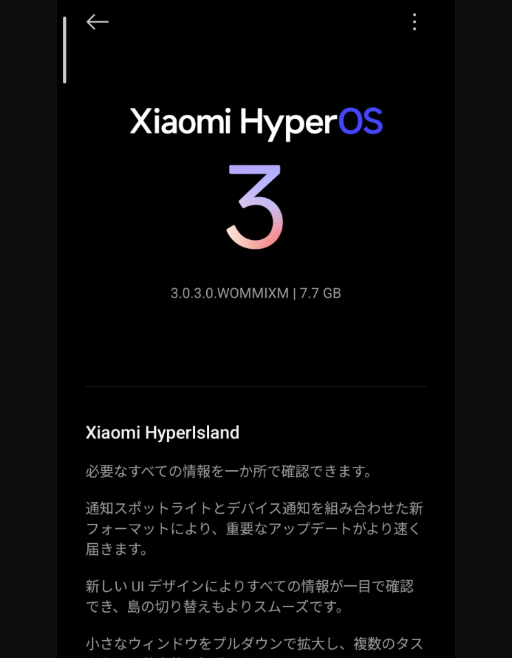 HyperOS 3.0では、AIを活用した機能強化も行われています。ユーザーの操作に応じた最適化や、システム全体のスマートな制御が可能となり、より直感的な操作体験が実現されています。