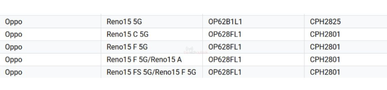 さらに混乱を招いているのが、型番CPH2801の存在です。この端末はGoogle Play Console上で、Reno15 C 5G、Reno15 F 5G、Reno15 A、Reno15 FS 5Gという4つの名称が確認されています。