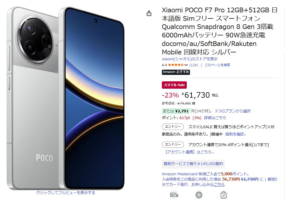 スタンダードモデルの「POCO F7」も容量別にセール対象です。