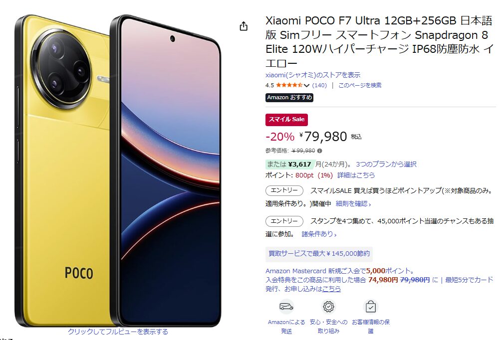 今回のセールで最もインパクトが大きいのが「POCO F7 Ultra」です。