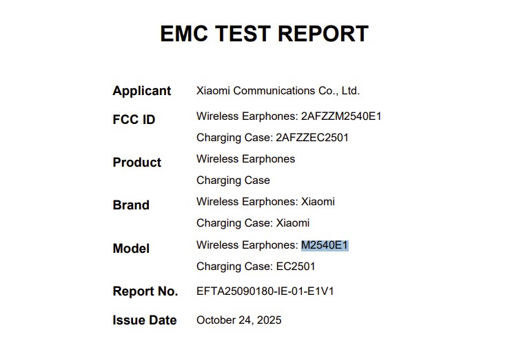 そしてFCC通過資料内にあったケースの対応イヤフォンの型番「M2540E1」とあり、これはすでに海外で複数の認証通過が確認されている「Xiaomi Buds 6」の型番と一致します。