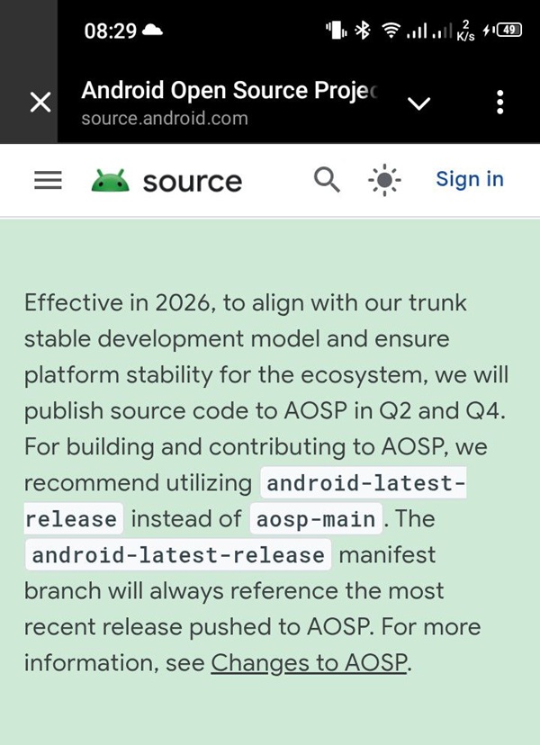 これまでGoogleは、四半期ごとのアップデートやメジャーアップデートにあわせて、比較的こまめにAOSPのソースコードを公開してきました。しかし2026年以降は方針を変更し、ソースコードの公開を年2回(第2四半期と第4四半期)に限定します。