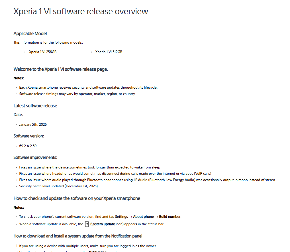 ソニーは、Xperia 1 VIの海外モデル向けに最新のソフトウェアアップデートを配信開始しました。今回公開されたのは、Android 16へのメジャーアップデート後、初となるファームウェア更新で、主に安定性や利便性に関わる不具合修正が含まれています。