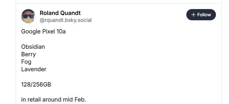 情報が正しければ、Pixel 10aの正式発表や追加情報は間もなく明らかになる見込みです。2月中旬という発売時期も迫っており、Aシリーズの新モデルを待ち望んでいるユーザーにとって注目の一台となりそうです。