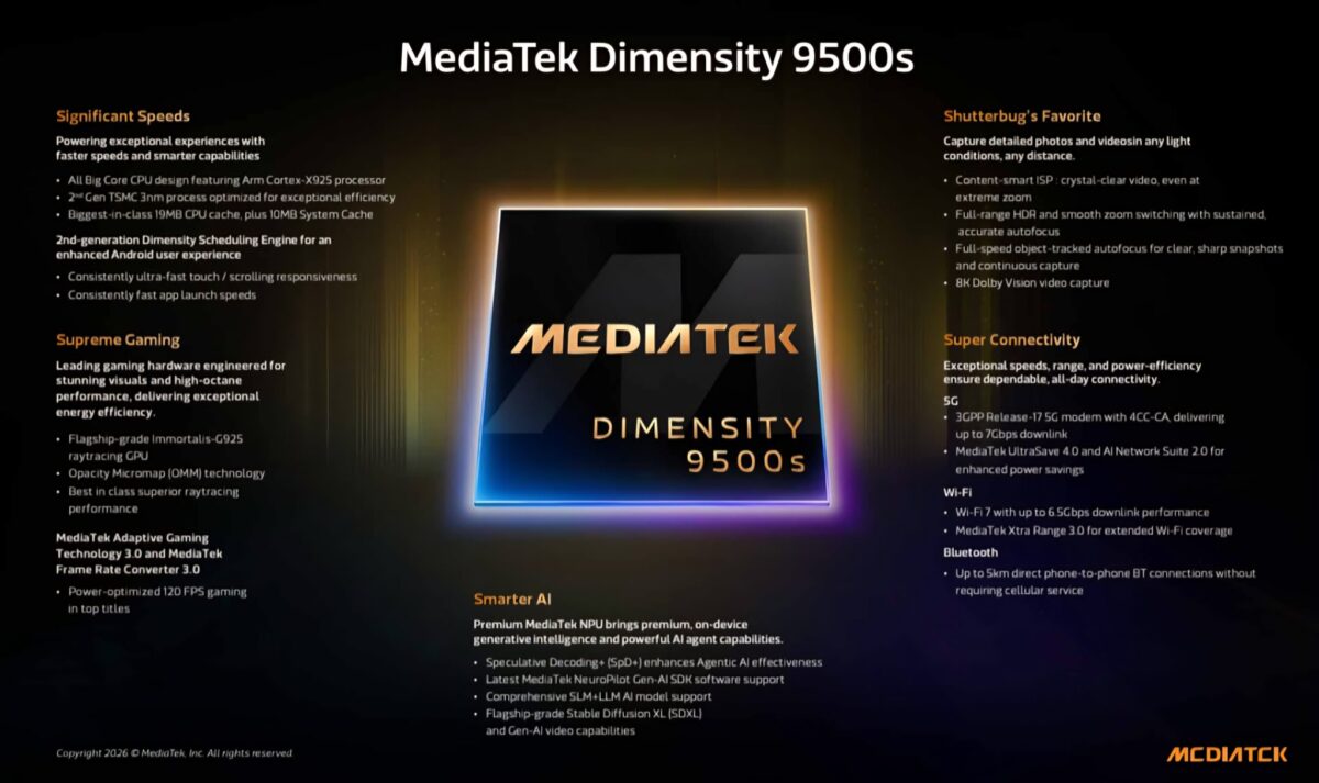 フラッグシップ級「Dimensity 9500s」、生成AIとゲーミング性能を強化