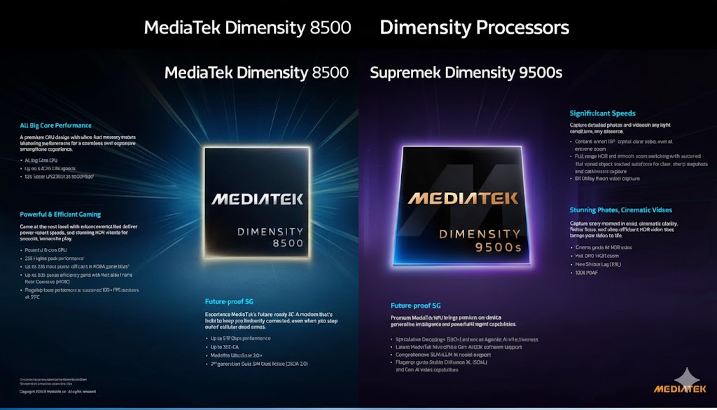Dimensity 9500s / Dimensity 8500 スペック比較表