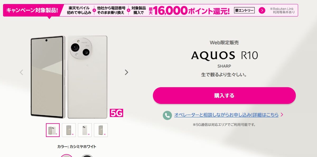 楽天モバイルでは、他社からの乗り換えと対象プランの申し込みを条件に、最大16,000ポイントの楽天ポイントを還元するキャンペーンも実施しています。映像やカメラ性能を重視しつつ、バランスの取れたスマートフォンを求めるユーザーに向けた1台と言えそうです。