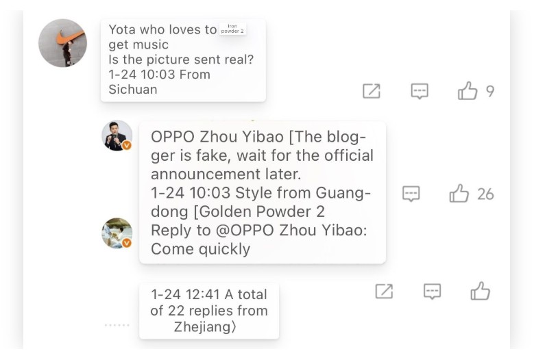 こうしたレンダリングに対し、OPPOのプロダクトマネージャーである周意保氏は、中国SNSのWeibo上で反応し、「そのブロガーはフェイク。正式発表を待ってほしい」とコメントしました。この発言から、公開されたデザインが事実と異なる、もしくは一部に誤りが含まれている可能性が高いと見られています。