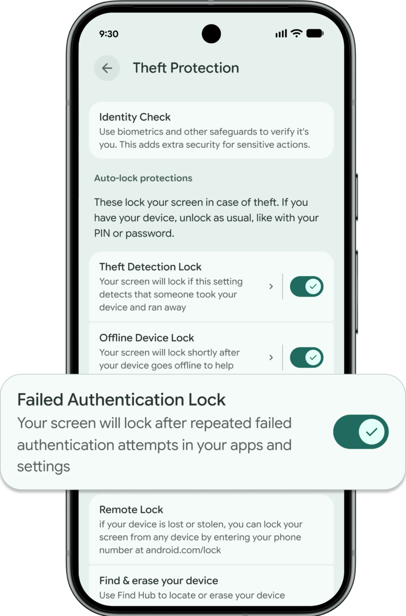Googleは、Android向けに提供している盗難対策機能を拡充し、端末を紛失・盗難された際のデータ保護や不正利用対策をさらに強化することを明らかにしました。今回のアップデートでは、認証失敗時の挙動見直しや、生体認証を利用するアプリ全体への保護拡大などが盛り込まれています。