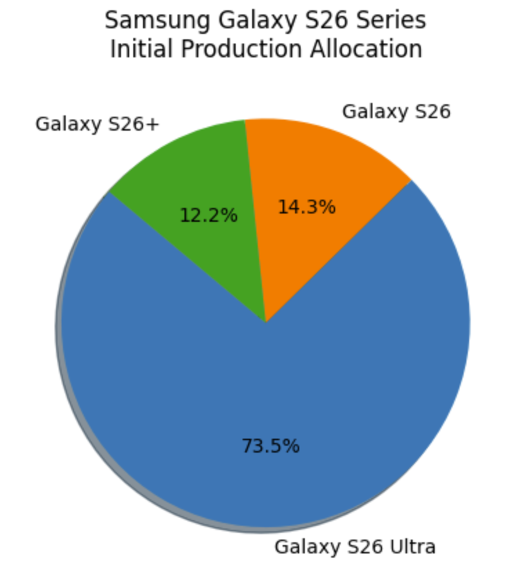 サムスンの次期フラッグシップ「Galaxy S26」シリーズについて、初期生産計画の内訳がリーク情報から明らかになりました。それによると、シリーズの大半が最上位モデルである「Galaxy S26 Ultra」に割り当てられており、無印モデルおよびPlusモデルは控えめな数量にとどまる見込みです。