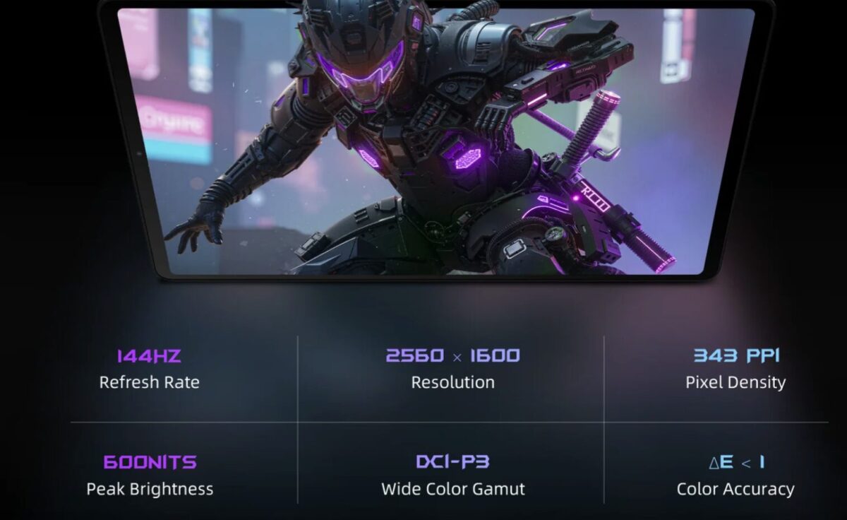 最大の特徴は、QualcommのSnapdragon 8s Gen 3を搭載している点です。このチップは4nmプロセスで製造され、Xiaomi Pad 7 Proにも採用されている高性能SoCです。ディスプレイは8.8インチのIPSパネルで、解像度は2.5K、リフレッシュレートは144Hzに対応しています。ピーク輝度は600ニトとされ、ゲーム用途だけでなく動画視聴でも快適な表示が期待できます。