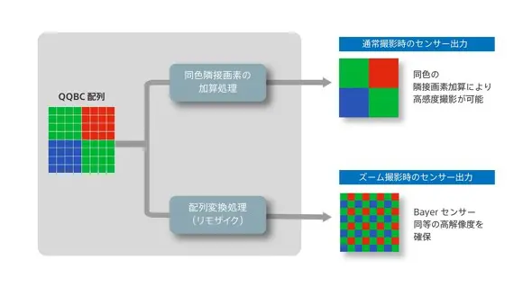 これにより、従来は複数のレンズや外部プロセッサに頼っていたズーム処理を、センサー単体でリアルタイムに行えるとしています。