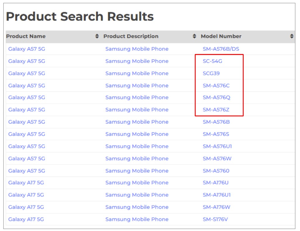 SC-54Gはドコモ版、SCG39はau版、そして過去の型番規則から判断すると、Galaxy A57 5Gの末尾型番には以下の意味があると考えられます。